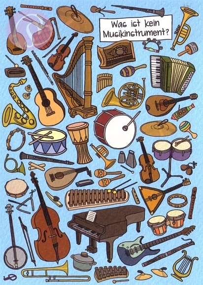 Postkarte, Rästelkarte Musikinstrumente[SK-PV5853]5 Postkarten, Rästelkarten, Suchkarten 10,5 * 14,8 cm (DIN A6)