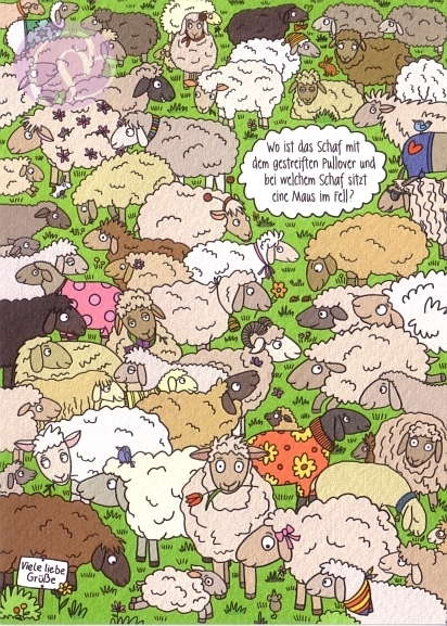 Postkarte, Rästelkarte Schafe[SK-PV6256]5 Postkarten, Rästelkarten, Suchkarten 10,5 * 14,8 cm (DIN A6)