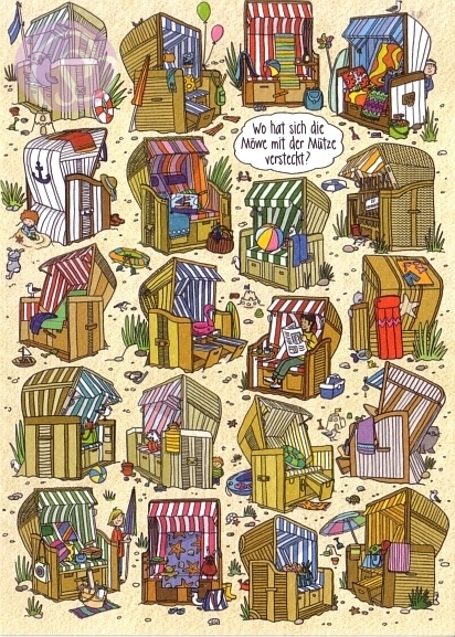 Postkarte, Rästelkarte Strandkorb[SK-PV6295]5 Postkarten, Rästelkarten, Suchkarten 10,5 * 14,8 cm (DIN A6)