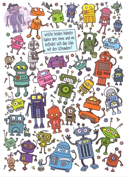 Postkarte, Rästelkarte Roboter[SK-PV6315]5 Postkarten, Rästelkarten, Suchkarten 10,5 * 14,8 cm (DIN A6)