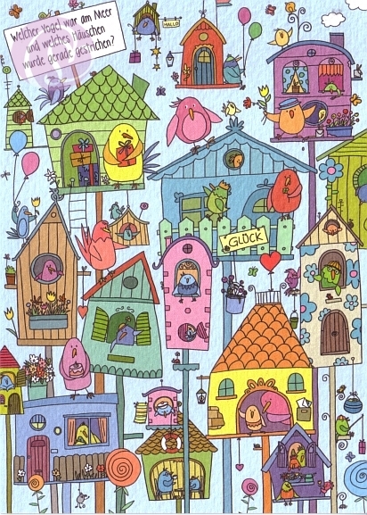 Postkarte, Rästelkarte Vogelhäuschen[SK-PV6440]5 Postkarten, Rästelkarten, Suchkarten 10,5 * 14,8 cm (DIN A6)