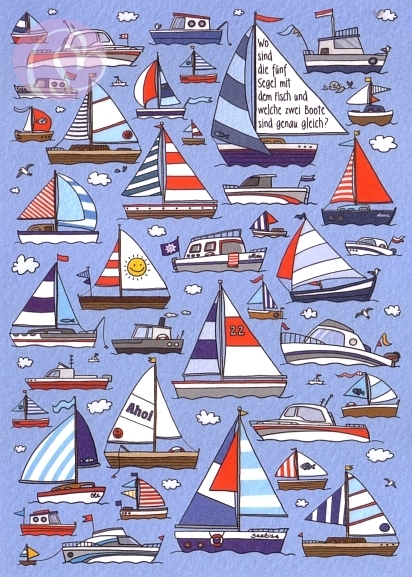 Postkarte, Rästelkarte Segelboote[SK-PV6463]5 Postkarten, Rästelkarten, Suchkarten 10,5 * 14,8 cm (DIN A6)