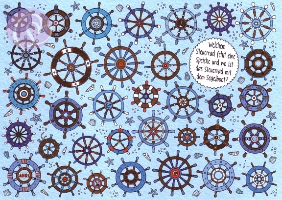 Postkarte, Rästelkarte Steuerrad[SK-PV6609]5 Postkarten, Rästelkarten, Suchkarten 10,5 * 14,8 cm (DIN A6)
