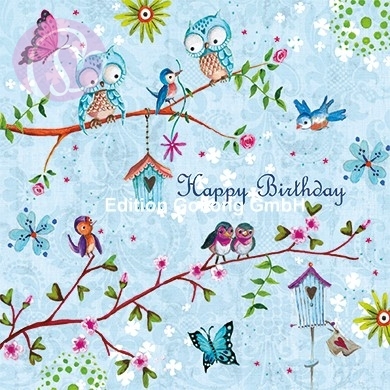 Postkarte Geburtstag, Eulen[EGCD12-1143]Quadratische Postkarte ~ Glimmerlack |