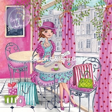 Postkarte Happy Birthday, Shopping[EGCD12-1625]Quadratische Postkarte ~ Glanzlack |
