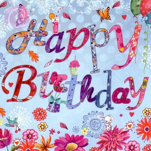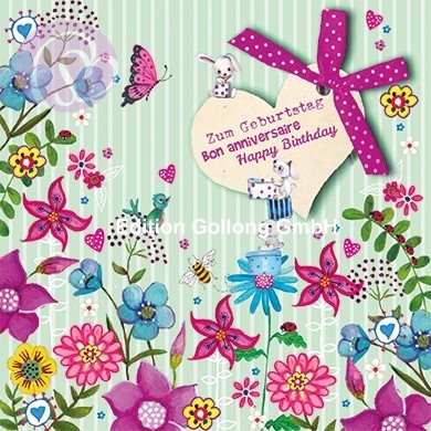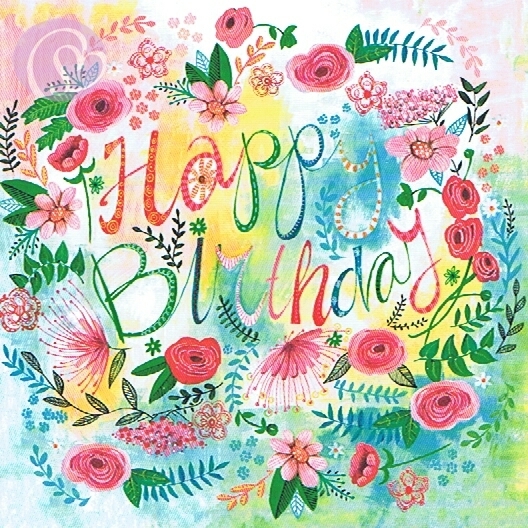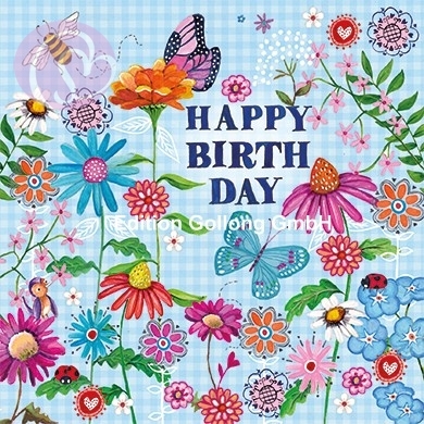 Postkarte Happy Birthday in Blumen[EGCD12-1606]Quadratische Postkarte ~ Glanzlack |