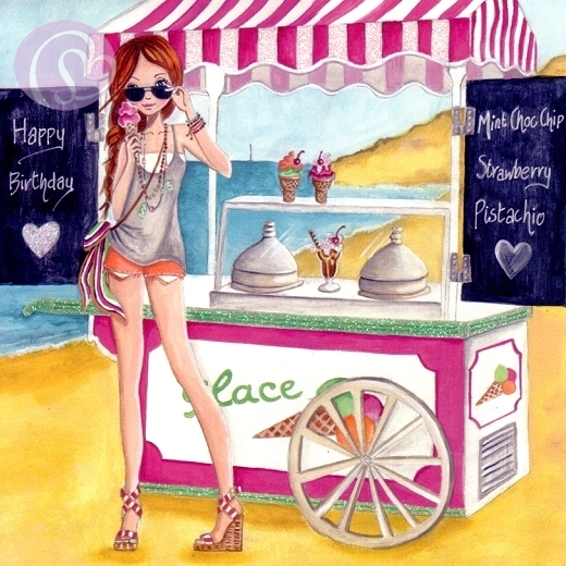 Postkarte Geburtstag, Eiswagen[EGCD12-1261]Quadratische Postkarte ~ Glimmerlack |