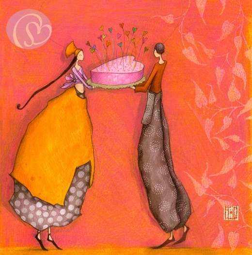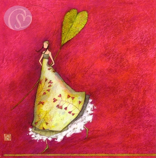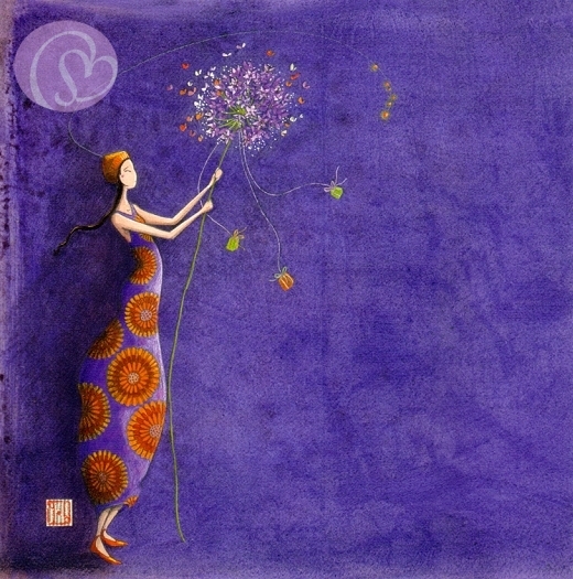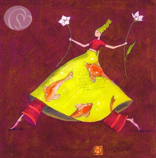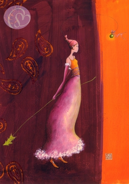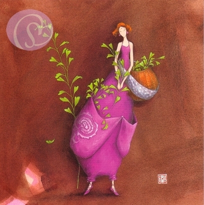 Postkarte Frau mit Zweigen[GB_BA031]Quadratische Postkarte ~ partieller Glanzlack |