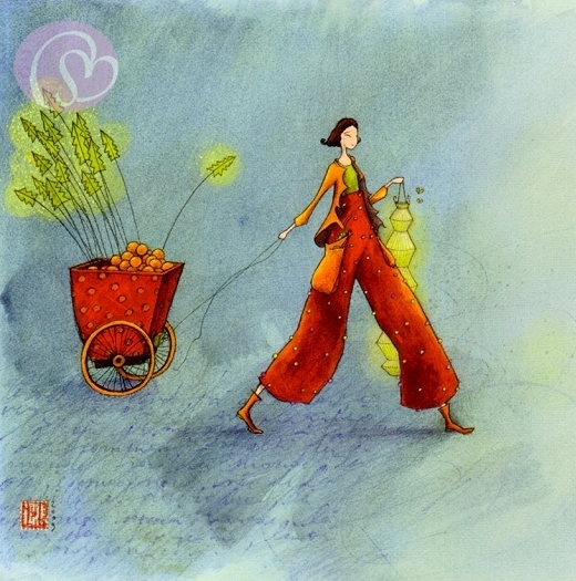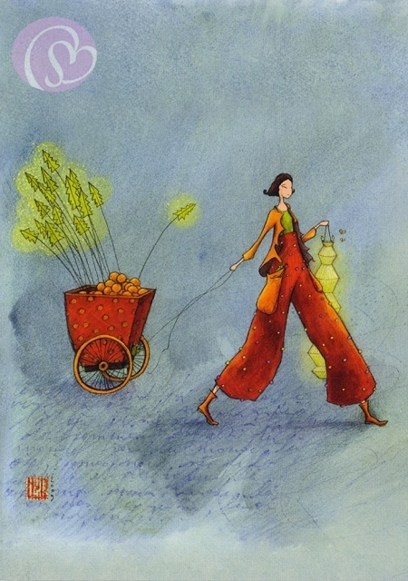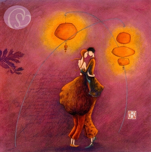 Postkarte Paar mit Lampions[GB_BB231]Quadratische Postkarte ~ partieller Glanzlack |