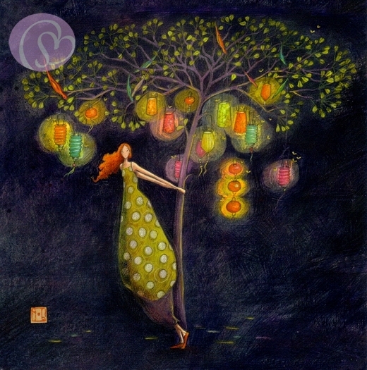 Postkarte Lampionbaum[GB_BB242]Quadratische Postkarte ~ partieller Glanzlack |