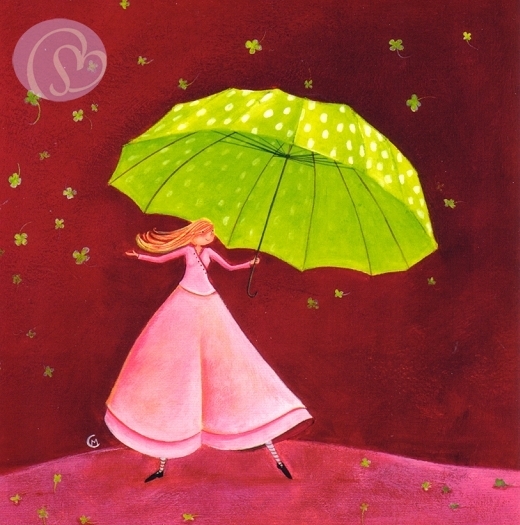Postkarte Mädchen mit Schirm[MC_BC058]Quadratische Postkarte ~ partieller Glanzlack |