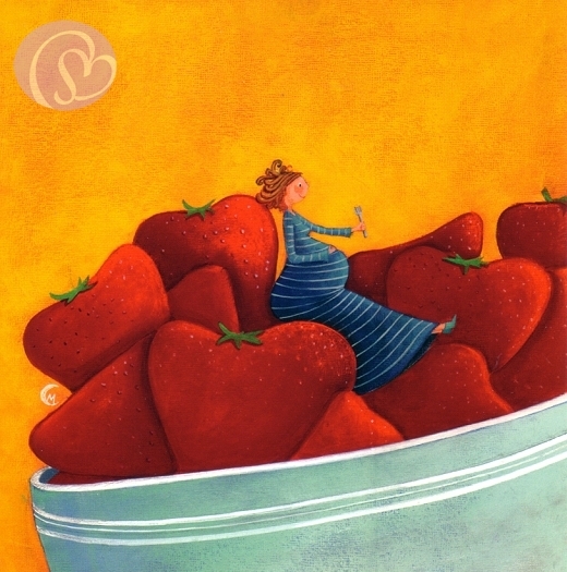 Postkarte Mädchen mit Erdbeeren[MC_BC068]Quadratische Postkarte ~ partieller Glanzlack |