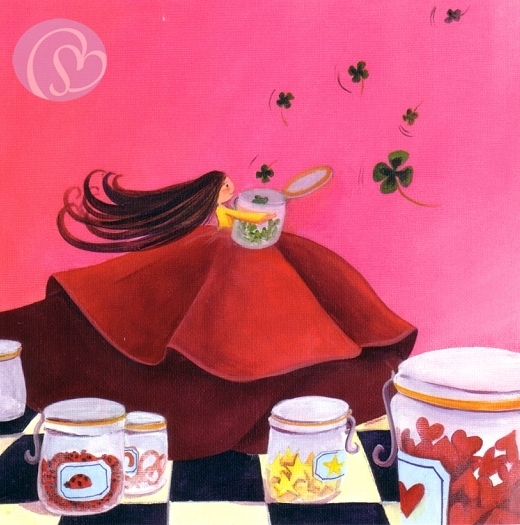 Postkarte Mädchen mit Kleeblättern[MC_BC095]Quadratische Postkarte ~ partieller Glanzlack |