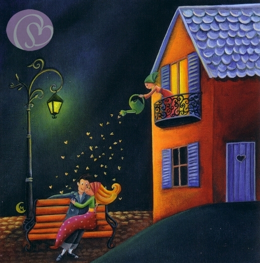 Postkarte Liebespaar auf Bank[MC_BC108]Quadratische Postkarte ~ partieller Glanzlack |