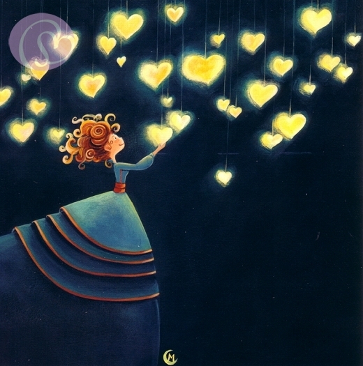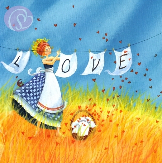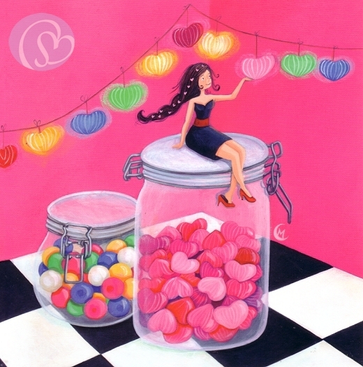 Postkarte Mädchen mit Herzen[MC_BC130]Quadratische Postkarte ~ partieller Glanzlack |