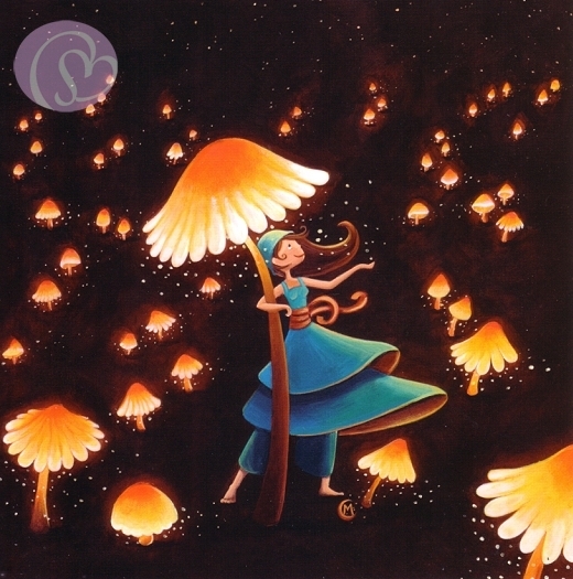 Postkarte Mädchen mit Pilzen[MC_BC131]Quadratische Postkarte ~ partieller Glanzlack |