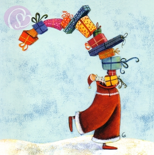 Postkarte Kinder mit Geschenken[MC_BC064]Quadratische Postkarte ~ partieller Glanzlack |