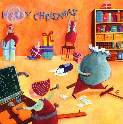 Postkarte Wichtelwerkstatt[MC_BC16X]Quadratische Postkarte ~ partieller Glanzlack |