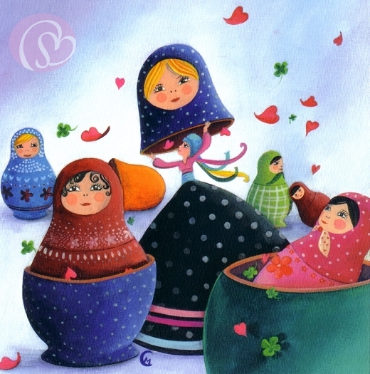Postkarte Matrjoschka[MC_BC097]Quadratische Postkarte ~ partieller Glanzlack |