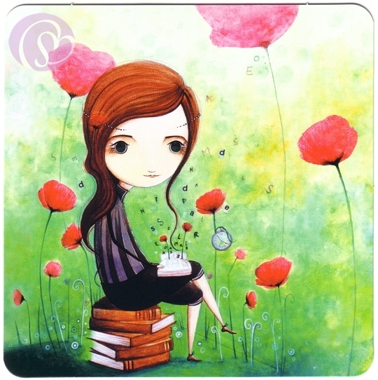 Postkarte Mädchen mit Büchern[JW_BU11]Quadratische Postkarte mit runden Ecken ~ partieller Glanzlack |