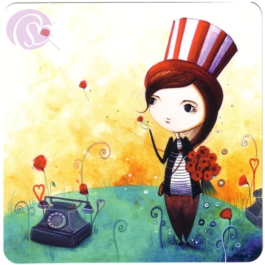Postkarte Mädchen mit Telefon[JW_BU05]Quadratische Postkarte mit runden Ecken ~ partieller Glanzlack |