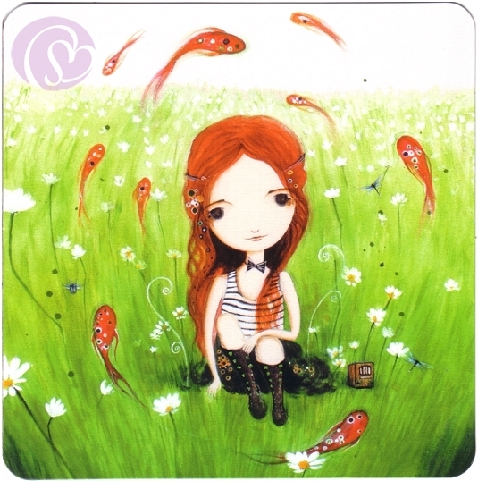 Postkarte Mädchen mit Fischen[JW_BU03]Quadratische Postkarte mit runden Ecken ~ partieller Glanzlack |