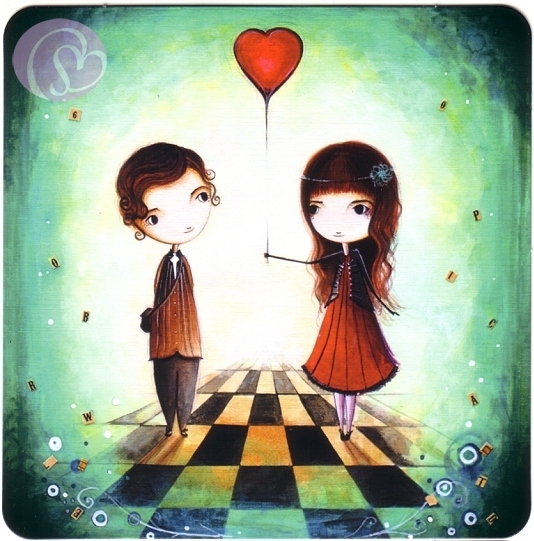 Postkarte Mädchen mit Herzluftballon[JW_BU02]Quadratische Postkarte mit runden Ecken ~ partieller Glanzlack |