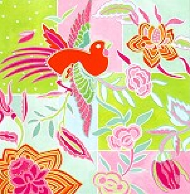 Postkarte Vogel in Blüten[EGKH12-389]Quadratische Postkarte ~ Glimmerlack |