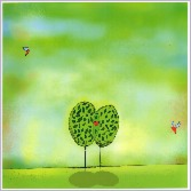 Klappkarte Zwei Bäume[ILQ416]Quadratische Klappkarte mit farbigem Umschlag ~ Glanzlack |