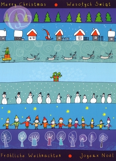 Postkarte Fröhliche Weihnachten, mehrsprachig[ILPC1283]10,5 * 14,8 cm (DIN A6) ~ Spotlack |