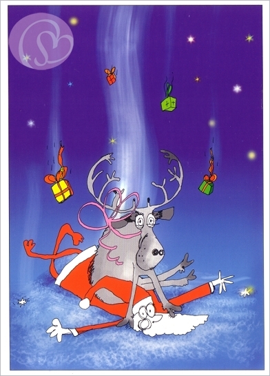 Postkarte Rentier mit Geschenkeberg[ILPC1293]10,5 * 14,8 cm (DIN A6) ~ Spotlack |
