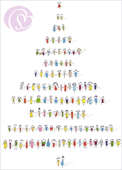 Postkarte Weihnachtsbaum, Menschenkette[ILPC1227]10,5 * 14,8 cm (DIN A6) ~ Spotlack |