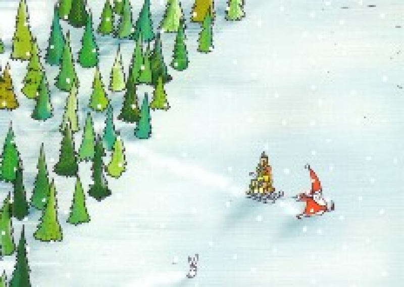 Postkarte Schlitten mit Geschenken[ILPC1208]10,5 * 14,8 cm (DIN A6) ~ Spotlack |