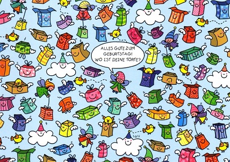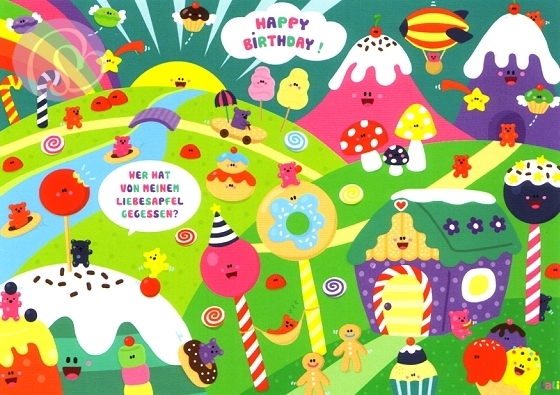 Wo ist Deine Torte[MMCL028]Postkarte, 14,8 * 10,5 cm (DIN A6) Suchkarte mit Lösungsfeld zum ~ Glanzlack |