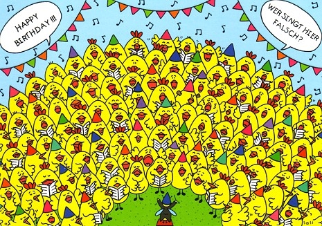 Wer singt hier falsch[MMCL026]Postkarte, 14,8 * 10,5 cm (DIN A6) Suchkarte mit Lösungsfeld zum ~ Glanzlack |