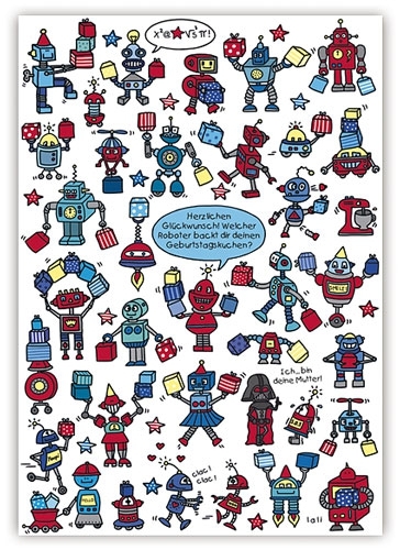 Welcher Roboter[MMCL035]Postkarte, 14,8 * 10,5 cm (DIN A6) Suchkarte mit Lösungsfeld zum ~ Glanzlack |