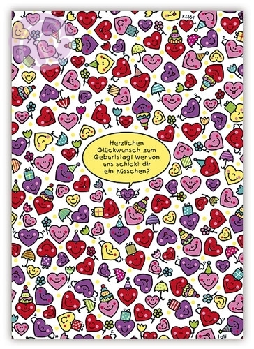 Wer von uns schickt dir ein Küsschen[MMCL054]Postkarte, 14,8 * 10,5 cm (DIN A6) Suchkarte mit Lösungsfeld zum ~ Glanzlack |