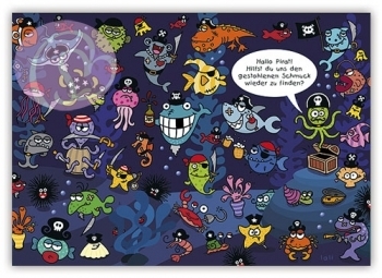 Happy Birthday! Welcher Pirat hat dein Geschenk gestohlen[MMCL057]Postkarte, 14,8 * 10,5 cm (DIN A6) Suchkarte mit Lösungsfeld auf der Rückseite.