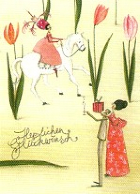 Klappkarte Herzlichen Glückwunsch, Frau auf Pferd[GZ14002SL]Grußkarte illustriert von Silke Leffler Doppelkarte mit Umschlag |