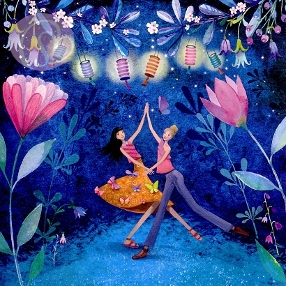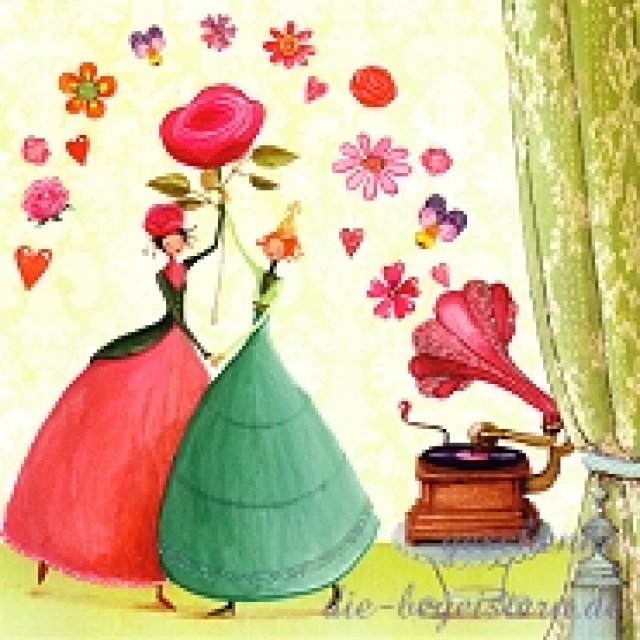 Postkarte Tanzende Mädchen[EGMM12-666]Quadratische Postkarte ~ Glimmerlack |
