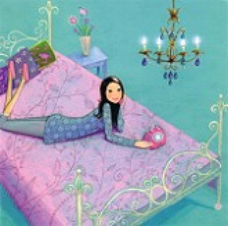Postkarte Mädchen mit Telefon[EGMM12-626]Quadratische Postkarte ~ Glimmerlack |