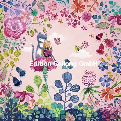 Postkarte Mädchen mit Buch und Katze[EGMM12-1674]Postkarte von Mila Marquis ° Quadratisch