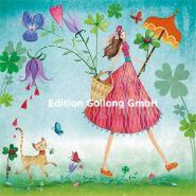 Postkarte Mädchen mit Sommerblumen[EGMM12-1266]Quadratische Postkarte ~ Glimmerlack |
