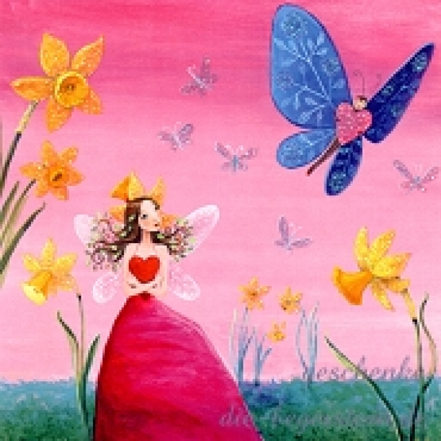 Postkarte Elfe mit Vögeln[EGMM12-788]Quadratische Postkarte ~ Glimmerlack |