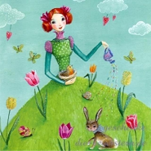 Postkarte Mädchen mit Gießkanne[EGMM12-1662]Postkarte von Mila Marquis ° Quadratisch