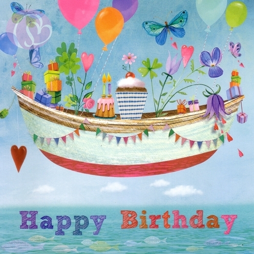 Postkarte Happy Birthday, Schiff[EGMM12-1351]Quadratische Postkarte ~ Glanzlack |