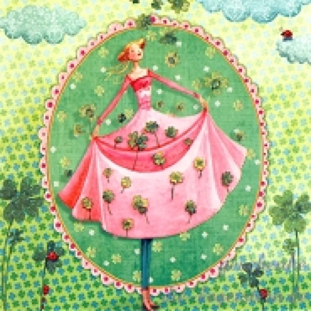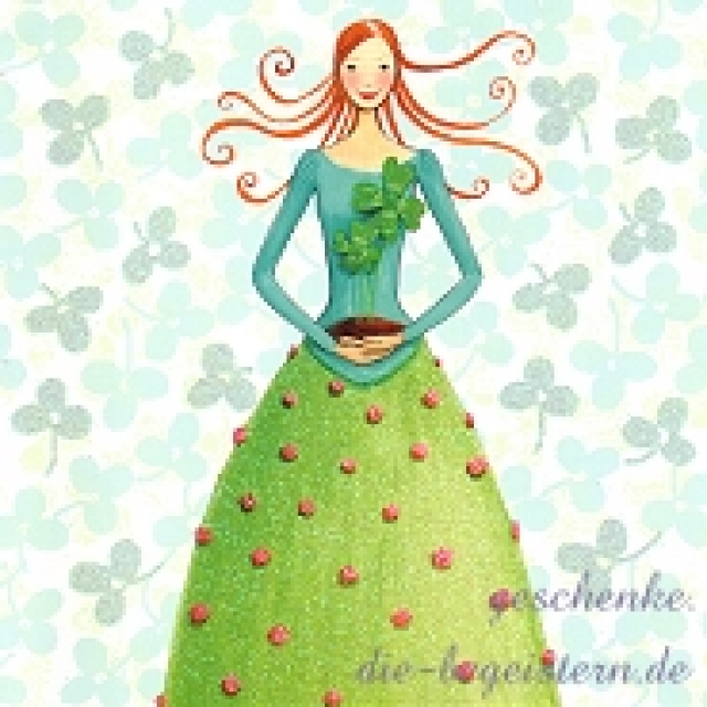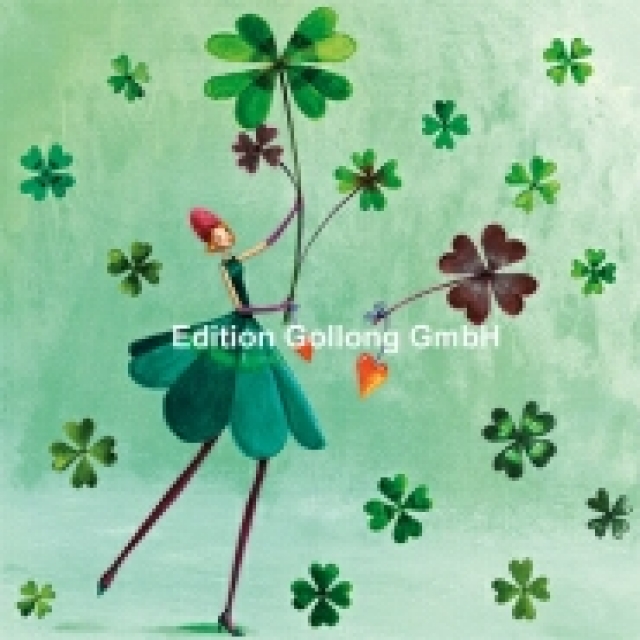 Postkarte Mädchen mit Kleeblättern[EGMM12-954]Quadratische Postkarte ~ Glimmerlack |