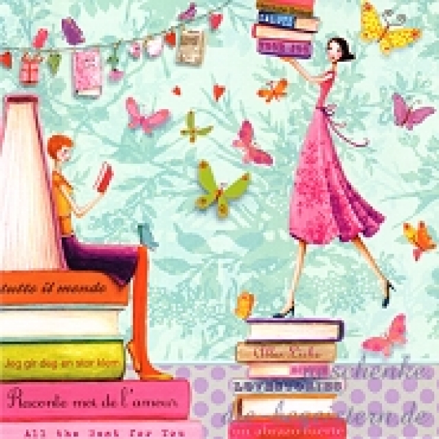 Postkarte Frau mit Geschenken[EGMM12-1027]Quadratische Postkarte ~ Glanzlack |