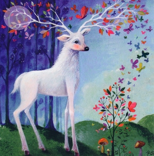 Postkarte Reh mit Blättern[EGMM12-1309]Quadratische Postkarte ~ Glanzlack |