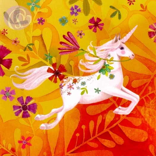 Postkarte Einhorn mit Blume[EGMM12-1421]Quadratische Postkarte ~ Glanzlack |